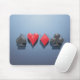 Fyra kortkostymer (spadar, hjärtor, diamanter och klubbar) endered på en blåttbakgrund.
