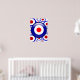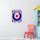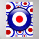 3d-effektmål för modet på en röd vit och blå 60-inspirerad mönster-bakgrund