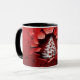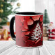 Här är en färglös julsäsong mugg som definitivt kommer att fånga uppmärksamheten! En röd sprucken vägg visningar en vit Helgdag träd med röda dekorationer. Inte din vanliga jul mugg! Den här designen ser underbar ut med svart handtag och inuti (visas) eller i vitt eller rött.