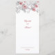 This classic wedding menu card features pink 3D roses and an elegant handwritten script on a white background. Customize it with bride and groom names on the backside.