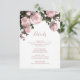 Blush pink 3D wild roses and greenery enclosure card. With a headline in an elegant handwritten script.
