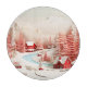 En charmerande design med moderna 3D-effekter med röda hus, fir träd och ett komplett vinterlandskap!