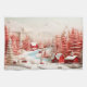 En charmerande design med moderna 3D-effekter med röda hus, fir träd och ett komplett vinterlandskap!