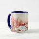 En charmerande design med moderna 3D-effekter med röda hus, fir träd och ett komplett vinterlandskap! Mugg finns i olika färg-kombinationer! (utom för huvudbilden som inte ändras)