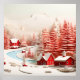 En charmerande design med moderna 3D-effekter med röda hus, fir träd och ett komplett vinterlandskap!