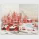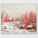 En charmerande design med moderna 3D-effekter med röda hus, fir träd och ett komplett vinterlandskap!