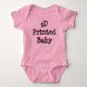 Babydräkten med slogan "3D skrivev ut babyen" i svart. Humoristisk bebisgåva för nyfödd bebis av smart föräldrar för geek eller för techno.