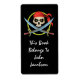 Den här pirat-etiketten har en tredimensionell skalle med korsade svärd. Kan användas som en bokplåtsetikett, fraktsetikett med mera.