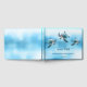 This elegant lake house guest book features an AI created turtle on a turquoise blue ocean background.