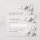 Det här bröllopssvarskortet har vita vilda blommor rosor texturerade 3D-blommor på en vit bakgrund. Matchande inbjudan tillgänglig.