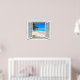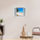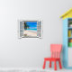 3D Tropical strand and Ocean view, låtsasfönsterscen, för en fönsterlös kontorsvägg. Roligt, realistiskt optisk illusionsscenk poster för ett kontor eller en studiekur.