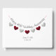 Vit anpassningsbar gästbok för 40-års bröllopsjubileum med rosaröda och silverfärgade hjärtflagor.