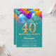 40-års födelsedags turkosa akvamarin turkos och gyllene färgglada ballonger och konfetti-inbjudan. För ytterligare anpassning, klicka på "Anpassa"-knappen och använd vårt designverktyg för att ändra denna mall.
