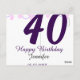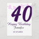 40-års födelsedagspresent namn datum år lila blomm vykort