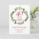 Med en elegant skog grönska girland, kan detta stilrena botaniska 40-års bröllopsdag save the date-kort anpassas med din speciella rubin jubileum information. Baksidan har en matchande blomster girland som ramar in din årsdag datum i elegant vit text på en rubinröd bakgrund. Designad av Thisisnotme©