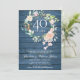 Med en delikat akvarellblommig grönskekrans på en blå rustik träpanelbakgrund kan denna eleganta botaniska 40-års bröllopsjubileum-inbjudan anpassas med din speciella rubin-jubileumsinformation. Baksidan har en matchande blomsterkrans som ramar in ditt jubileumsdatum i elegant vit text på rubinbakgrund. Designad av Thisisnotme©