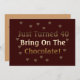 Du har just fyllt 40 och det betyder att det är dags att äta mer choklad. Här är din fyrtioårsfestinbjudan: "Just fyllt 40. Kom med chokladen!" Bra present till den som älskar choklad och är 40 år.
