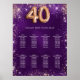 40-årsdag lila glitter sittande diagram poster