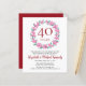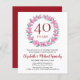 Budgetinbjudan för 40:e bröllop-årsdagen innehåller en känslig blommigt av blommor och löv från vildens rosa och grönt. Inbjudan kan vara lätt personlig med din speciella information om bytesårsdagen. Baksidan av inbjudan har en matchande blommigt garland som sätter årsdagen data i elegant vit text på en ruby red bakgrund. Matchande party-förråd och -kontorsmaterial finns i insamlingen "Rosa Flowers" på 40:e Bröllop-årsdagen.