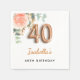 För en elegant och feminin 40-årsdag födelsedagsfest. En vit chic bakgrund. Dekorerad med en ro guld och en rosa vattenfärgad blomma, blommigt, grönt eucalyptus löv, spriter, grönsaks- och faux ro sprigs. Personalisera och namn. Svarta och gyllene brev. Namn är skrivet med ett modernt handskript i stil. Nummer 40 är skrivet med ett gyllene stil-teckensnitt.