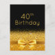Elegant, klassisk, glamorös och feminin stil-inbjudan. Ett faux färgad-band och en fluga med gyllene glitter och gnistra, lite av lek och lyx för en fyrtioårsdag. Svart bakgrund. Med texten: 40:e födelsedag på framsidan skriven med modernt block brev. Lägg till din händelseinformation på baksidan.