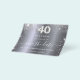 Observera att det här Spara datumet är pappert och mycket tunt. Kuvert ingår inte. Om du vill ha ett tjockare Spara datumkortet (samma design) kan du besöka vår butik. En elegant Spara datum för en 40-årsdag party. En modern faux-metallisk tittar i silver, dekorerad med faux glitter stoft. Anpassa och lägg till datum och namn/ålder. Texten: Spara datumet skrivs med ett stort trendig-handskript i stil. Nummer 40 med ett stil-teckensnitt med ballong.