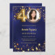 En modern fotoinbjudan till snyggten för en 40-årsdag party. En marin blå bakgrund, dekorerad med faux guld-stjärnor. Den blå färg är ojämn. Anpassa och lägg till information om foto och party.
