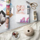 För en 40-årsdag i party för en kvinna, som firar sitt liv med en kollage av 10 av dina egna foton. Foto av familj, vänner, husdjur, semester, barn. Mallar för ett namn, 40 och ett datum. Rosa och lila färgad brev. Elegantens vita bakgrund.