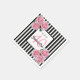 En napkin för 40-årsdagen party. Klassiskt smalt svart och vitt lodrät rand som bakgrund. Med giftigt och feminin rosa ros som dekoration. Ett vitt och rosa ram på framsidan med mall för ålder, namn och datum. Ålder nummer 40 i rosa, namn och datum i svart. Namn är skrivet med ett handskript i stil.