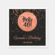 En elegant och glamorös party-napkin för en 40-årsdag party för en kvinna. En svart färgad i chicen. En stor färgad i ro guld med modern handskriven stil: Hej 40! Golden konetti dusch, regn som dekoration. Mall för namn och datum.