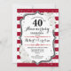Rubinröd 40-årsjubileumsfestinbjudan. Elegant röd, svart och vit inbjudningskort med falskt glitter silver. Har stilrena ränder, skrivstil och vita rosor. Perfekt för en 40-årsjubileumsfirande.
