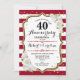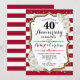 Rubinröd 40-års bröllopsfest inbjudan. Elegant röd, svart vit inbjudningskort med falskt glitterguld. Har stilrena ränder, scriptfont och vita rosor. Perfekt för en 40-årsjubileum firande.
