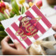 Orden på kortet lyder 'En rubin gör' för 40-årsjubileet.