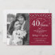 40-årsjubileum med foto - röd silver inbjudningar
