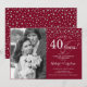 40-års bröllopsdag inbjudan med foto. Elegant design i silver och rubinröd med skrivstil och konfetti. Kan anpassas för alla år av äktenskap. Skål för 40 år!
