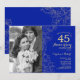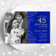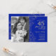 40-årsjubileum med foto - Sapphire vit guld inbjudan. Modernt kungligt blått design med botaniska konturteckningar accenter och typsnittsmanuskript. Enkel trendig inbjudningskort perfekt för en stilig bröllopsjubileumfirande. Kan anpassas för att återspegla alla års äktenskap. Utskriven Zazzle-inbjudningar eller direkt nedladdningsbar digital utskrivbar mall.