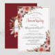 Utsökt 40-års (eller annat) bröllopsjubileums-inbjudan med roséguldsdetaljer och skiftande burgunderröda och rosa handmålade akvarellblommor. Möjlighet att ändra jubileumsår för att passa era behov. Användning av elegant handskriven stil och modern typografi. Baksidan av kortet i rött rubin, burgunderton med fängslande blomsterdetalj i mitten. Koordinerande produkter finns tillgängliga. Del av vår "Heaven in Rose"-kollektion för bröllop och evenemang.