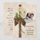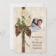 Elfenbensfärgad rosenbukett med pärlor på damastbakgrund och personlig foto för hedrade paret.