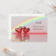 40-års jubileumsinbjudan med en regnbåge och två blanka rubinröda hjärtan som flyter på vattnet. Anpassa provtexten på baksidan med din egen information för ditt evenemang.