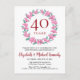 Denna inbjudan postkort för 40-års bröllopsjubileum har en delikat blomsterkrans gjord av vilda blommor, växter och fjärilar. Inbjudan kan enkelt anpassas med din speciella rubin-jubileumsinformation. Baksidan av inbjudan har en matchande blomsterkrans som ramar in jubileumsdatumet i elegant vit text på rubinröd bakgrund. Matchande festmaterial och brevpapper finns tillgängliga i samlingen "40th Wedding Anniversary Pink Flowers".
