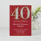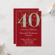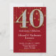 En elegant inbjudan till 40-årsjubileum i rött och guld, med en stor 40 med diamanter och guldutseende tillsammans med en glittergardin av guldlyktor.