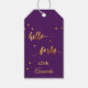 Elegant och modern märkre till förmån/gåva för en 40-årsdag i party. Chic lila baksida och faux guld text skriven med ett trendig handskript i stil: hej fyrtio. Med gyllene prickar som dekoration. Mallar för namn golden brev. Du kan ändra bakgrunden till färg så att den matchar ditt tema. Klicka på Anpassa och välj sedan en bakgrund färg på högerna. Baksida: svart bakgrund färg och gyllene prickar.