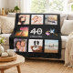 En gåva till en kvinnas 40-årsdag som firar hennes liv med en kollage av 8 av dina foton. Mallar för namn, 40 år och ett datum. Födelsedatum eller födelsedatum. Vitt och grått färgad brev. Bakgrund till svart färgad.
