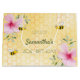 För en sommar, 40-årsdag party. Gult, vit bakgrund med en bikaka mönster. Dekorerad med rosa färgad tropiska blommigtar blommor, hibiscus och lycklig humla. Mallar för datum och namn och ålder 40 år. Grönt färgad brev.
