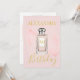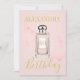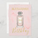 En rosa vatten färg stänk är bakgrunden till denna klassiska fransk parfym flaska. Märket på flaska har nummer 40, men det kan ändras i vilken ålder som helst. Namn i guld färg kan lätt ändras för din egen personliga utformning..