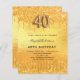En modern, snyggt och glamorös inbjudan till en 40-årsdag party. En faux guld tittar bakgrund med faux glitter droppar, färgdroppstift. Namn är skrivet med ett modernt handskript i stil. Anpassa och lägg till information om party. Nummer 40 skrivs med ett stil-skript med ballong.