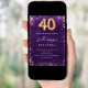 Fira en speciell 40-årsdag med denna fantastiska inbjudan, perfekt för en elegant party. Den djupa bakgrunden till lilan har ett vackert, ojämlikt struktur, accentuerat av ro guld och gyllene gnistor. Namn är skrivet i ett delikat, handskrivet skript, med en personlig och en sofistikerad beröring. Anpassa inbjudan genom att lägga till namn och all viktig information om party. Denna lyxiga utformning anger tonen för ett oförglömligt firande.