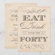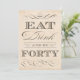 Elegant anpassade födelsedagsfest-/födelsedagsmiddagsinbjudan med ord Eat, Drink och vara fyrtio.