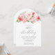 En vacker och femininin festinbjudan att fira en födelsedag i elegant stil. Den här blommigten har en gräns som är utmärkt för att charma rosa blommor och grönt. Inbjudan är tillgänglig som en utskriven inbjudan eller digital hämtning. Arch-formen är en av årets hetaste inbjudningstrender.