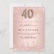 En modern, snyggt och glamorös inbjudan till en 40-årsdag party. En ro guld-bakgrund med dropa, färgdroppstift. Namn är skrivet med ett modernt skript för färgaden ro guld i mörk, skrivet med stil. Anpassa och lägg till information om party. Nummer 40 skrivs med ett stil-skript med ballong.